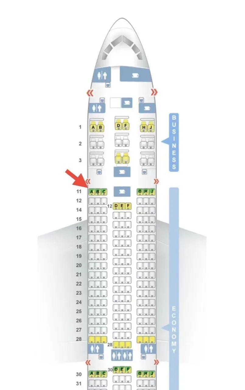 可能与他的座位有关,他坐在很靠前的位置,11A,邻近飞机左侧的紧急出口。
